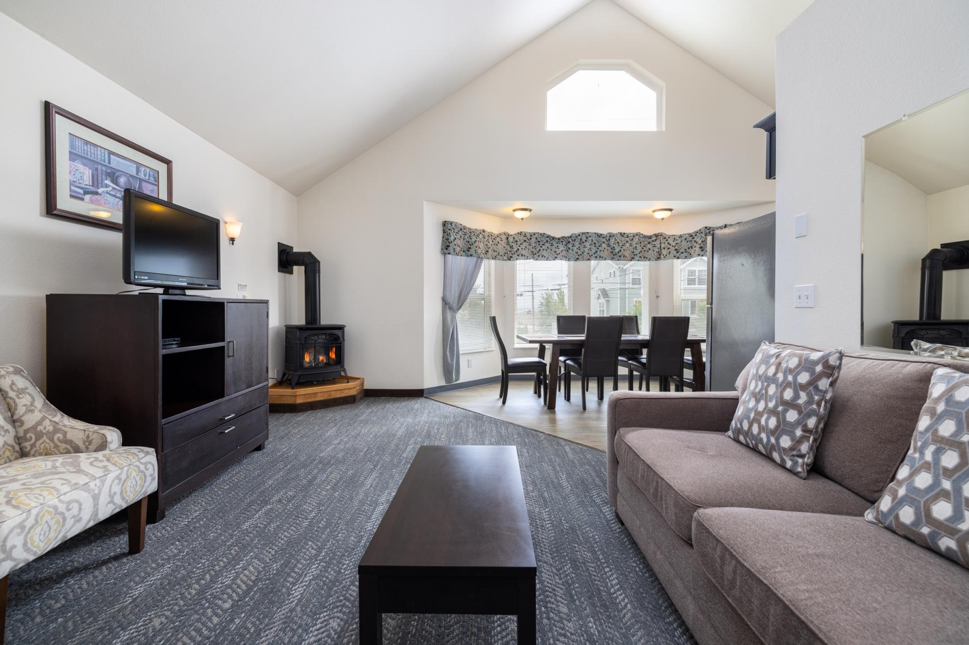 Enjoy a limited view of Mt. Baker. The Villa features two queen size beds and a queen sleeper sofa, a separate living room with a fireplace, and its own fully equipped kitchen. Ample storage, a tub/shower combo and a private entrance make this villa a true home away from home.
